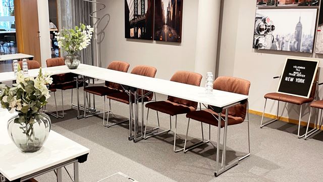 New York är perfekt för mindre utbildningar och seminarier. Den rymmer 16 sittande personer och du har även möjlighet att använda lobbyn för att dela upp gruppen i mindre diskussionsgrupper